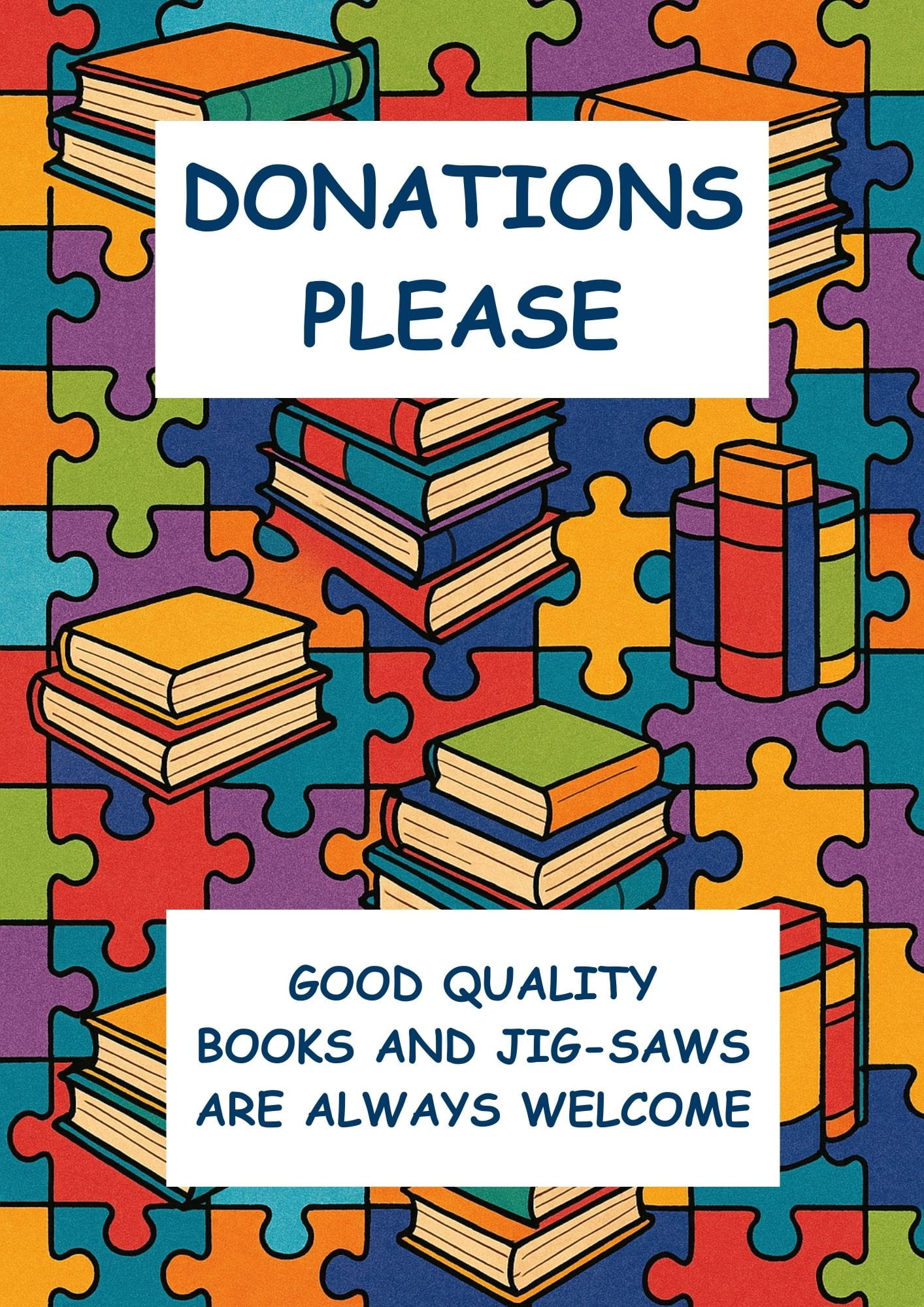 If you have books you’ve loved and are ready to pass on, or jigsaws complete and in good condition, we’d be so grateful for your support.