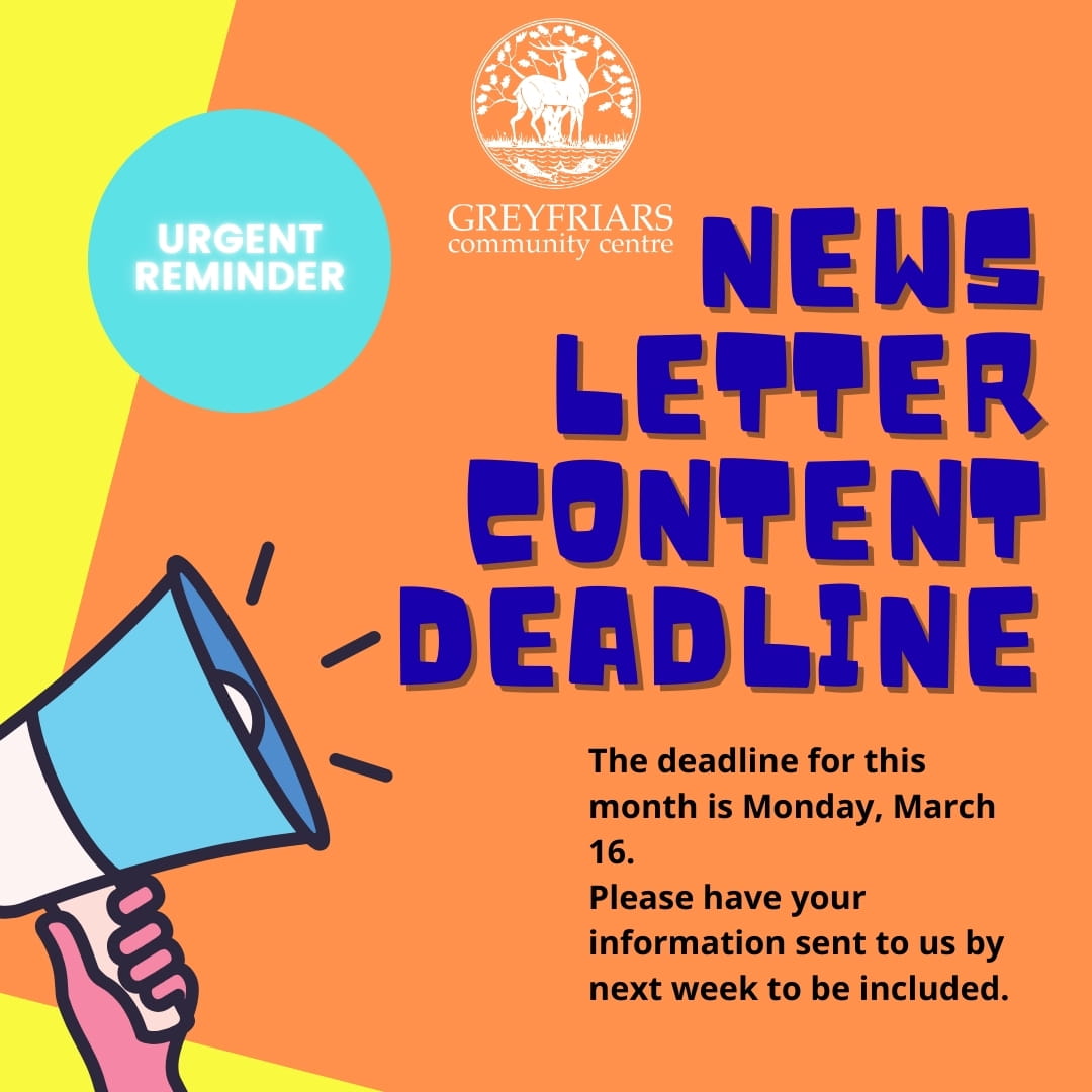 If you could please send any content you wish to include for April over to our email address: office@greyfriarsringwood.org.uk
