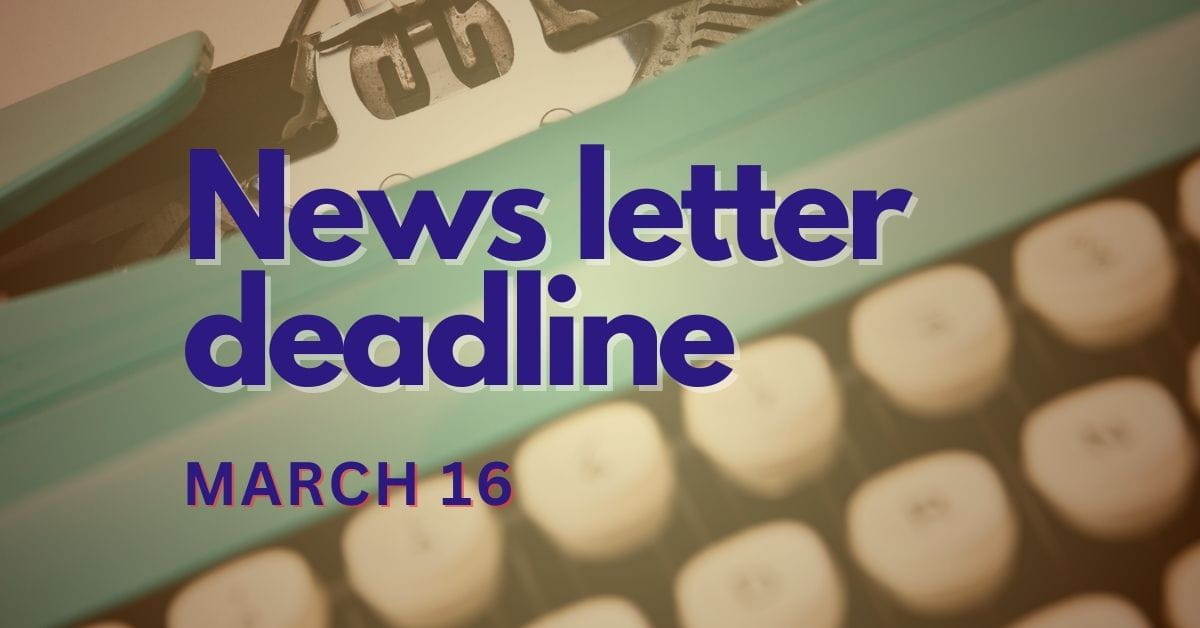 April’s News letter deadline!
